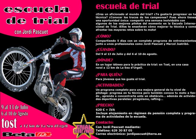 ir haciendo vuestras reservas, la escuela de trial de Jordi Pascuet ha