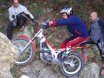 Algunas zonas que parecían no salir, las ejecutaban los monitores para demostrar que sí se podían hacer. Las zonas eran más bien difíciles (para el nivel de los pilotos congregados) ya que a la propia dificultad de la zona se añadió el hecho de que había helado y al ir deshelando en el transcurso de la mañana, el agua hacía que hubiese barro y que la piedra patinase mucho.