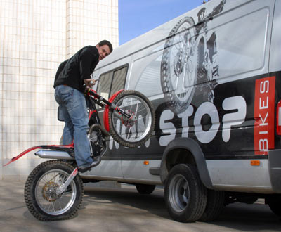 Tampoco podemos perdernos el ensayo de la moto oficial de Toni Bou y es que no todos los días puede uno subirse a la campeona del mundo.