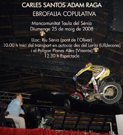 Por todo esto, un pianista, compositor y director de espectaculos de fama mundial y un seis veces campeón del mundo de trial, aceptan la invitación de la Taula del Sénia, para hacer repetir uno de los espectáculos más singulares de las Sónar nits de Frankfurt (octubre 2007), pero hecho para la gente de su tierra.