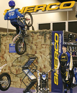 En el espectacular stand, en el que además de los modelos Sherco, también se exponían una extensa gama de productos relacionados con el mundo del trial.