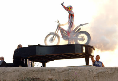 El espectáculo es en realidad una pieza especialmente compuesta para piano y moto de trial, en el que los movimientos del piloto y su moto se sincronizan con la partitura que interpreta el músico, que poco a poco va cortejando a la máquina hasta que ésta, de forma precisa, se monta encima del piano.