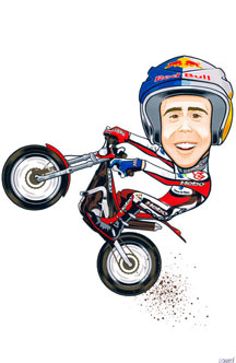 de Adam Raga con su moto de trial, con la finalidad de hacer adhesivos y otros