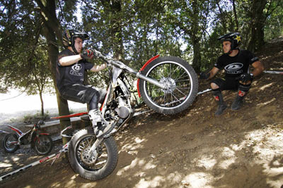 Lampkin hizo equipo con Noble en un lugar no muy apropiado del parque Haigh Country, cerca de Wigan, donde Dougie habia preparado unos cuantos obstáculos artificiales para que el cómico los abordara bajo sus indicaciones. Equipado con una nueva Beta Evo 2T, Ross hizo notables progresos a lo largo del día, alcanzando un buen entendimiento con el campeón de trial de 33 años.