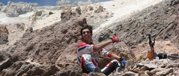 Así, los días 13 y 14 de Agosto Dariush quiso intentar subir a los picos volcánicos mas altos del mundo con una Montesa Cota 315R, con la ayuda de su compañero en el equipo Montesa de Irán, Alireza Mashhadi Tafreshi.