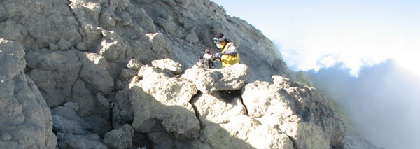 las erupciones frecuentes y terrenos muy resbaladizos, ya que el volcán