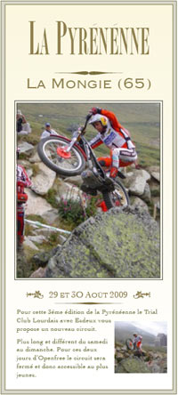 Organizado por el Trial Club Lourdais junto con Esedeux, con el conocido Bernard Estripeau al frente y que se disputará según su formato de reglamento Openfree sobre un recorrido de 8 kilómetros, con varias categorías: Minime, Espoirs, Juniors, Golden Gentleman, Grand sages y Féminas.