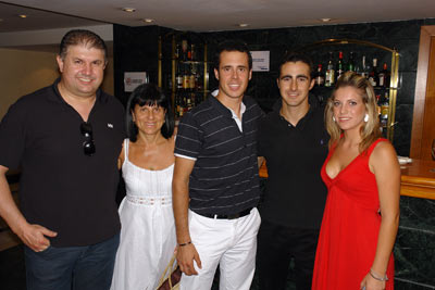 su muñeca izquierda escayolada, se reunió con James Dabill,
