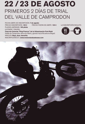 Esta es pues una interesantísima opción para colmar nuestras ansias trialeras estivales en un trial con la garantía de su entorno y de la organización por parte del M.C. Abadesses.
