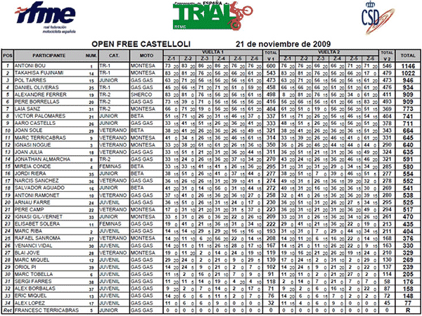 Por tanto habrá estas clasificaciones: scratch o total con todos los pilotos, TR2, Junior (de 16 a 18 años con motocicleta de hasta 125 cc), TR3, TR3+35, Cadete, Féminas, Juvenil 80 y Juvenil 125.