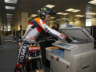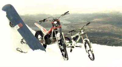 nieve y no pasa mucho tiempo sin regresar a su conocida moto de trial, aunque
