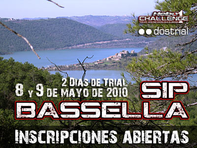 Este nuevo trial de larga duración, los 2 días Trial SIP Bassella, será los días 8 y 9 de Mayo, efectuándose las verificaciones el 7 o el 8 de Mayo. Está abierto a todas la categorías, inclusive las clásicas, y tendrá tres niveles de dificulta: rojo, azul y amarillo, de mayor a menor.