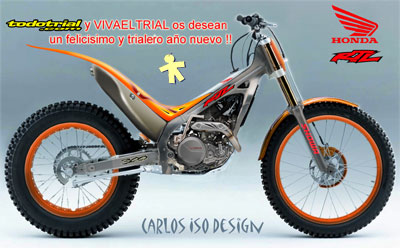 Carlos ha diseñado la moto teniendo en cuenta que si Honda sacara un nuevo modelo de TLR, seria muy parecido a lo que habéis visto en este dibujo por pura lógica de la evolución de su producto y de la mentalidad de la marca. Aunque a simple vista sea muy parecida, todo salvo la horquilla y las ruedas son nuevos, destacando el motor y el chasis, tal como os decíamos en el texto de la broma, que os dejamos a continuación por si algunos lectores no pudieron pasar por aquí el día 28... Feliz año 2011 a todos de parte de Carlos Iso y de Todotrial.com y gracias muy especiales a Carlos por su detalle.