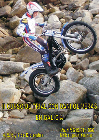- Cursillo: de un fin de semana en el área de trial con hospedaje y alimentación incluidos, con trato familiar, con objeto de poner a punto la moto a vuestras características, mostraros los secretos de esta y marcar las pautas de entrenamiento y mejora técnica para cada piloto y sus características personales, del que guardaréis un grato recuerdo.