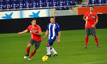 El primer partido de fútbol enfrentó a los jugadores del Espanyol contra un equipo de estrellas deportistas capitaneado por el joven piloto de Fórmula 1 Jaime Alguersuari junto con miembros de su club de fans, el trialero Adam Raga, el piloto del mundial de motociclismo Aleix Espargaró, los tenistas Marcel Granollers y Nicolás Almagro o el olímpico de skeleton Ander Mirambell, entre otros.