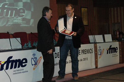 Como todos los años la Real Federación Motociclista Española celebra la Gala de los Campeones para homenajear a los pilotos que han destacado por sus resultados en este año 2012. El Colegio de Ingenieros de Caminos, Canales y Puertos, será el escenario donde se reunirán los mejores deportistas de la temporada. El evento empezará alrededor de las 1300h, después de que finalice la Asamblea General Ordinaria de la RFME. Los campeones de España en las categorías absolutas recibirán sus merecidos diplomas de manos de miembros de la Federación que agradecerán así el trabajo realizado durante toda la temporada y el espectáculo ofrecido a los aficionados al motociclismo. Las especialidades de Velocidad, Trial, Trial Femenino, Trial Indoor, Supermotard, Quadcross, Motocross, Enduro, Cross Country y Freestyle tendrán a sus campeones en el escenario. Nombres tan ilustres como Toni Bou, Carmelo Morales, Alex Márquez, Jordi Torres, Francesc Cucharrera, Iván Cervantes serán algunos de los galardonados.