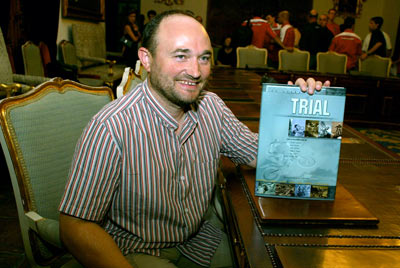 Una vez más los patrocinadores con Gas Gas y Hebo con Narcís Casas y Anna Casas a la cabeza, nos apoyaron incondicionalmente desde el principio. Contamos además en esta ocasión con un nuevo colaborador para el capítulo Preparación Psicológica, Pere Ollé, que no es psicólogo, pero sí entiende mucho de motivaciones y psicología de los pilotos, como muy bien sabe su amigo Jordi Tarrés. Tuvimos la suerte de contar en el apartado técnico con la colaboración de Josep R. Paxau, todo un lujo tener a nuestro más prestigioso técnico para este importante capítulo, en el que también colaboró Claudi Obrador, en aquél momento mecánico de Adam Raga. Entre la gente que colaboró con información y datos también hay que destacar a una figura mítica, nada menos que Sammy Miller, quien me envió su libro y varias fotografías autografiadas. De este libro se hicieron dos presentaciones, una en la prueba del Mundial de Trial en Asturias, prueba organizada por el Motoclub Cuenca Minera. Era la primera vez que se veía el libro que causó entusiasmo entre los trialeros, entre las fotos de la presentación se puede ver a un jovencísimo Toni Bou. La segunda presentación, por gentileza de Octagon Esedos, se realizó en el Trial de las Naciones, celebrado en Córdoba, en un lugar impresionante: El salón de Plenos de la Diputación de Córdoba.