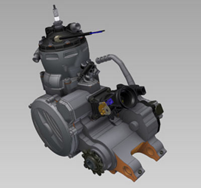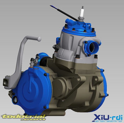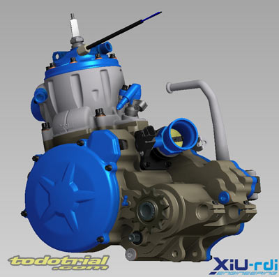 Un producto destacado de los proyectos desarrollados por XiuRDi Engineering es el motor de inyección. Se trata de un motor para sustituir el motor PRO, montado en las series de GG desde 2002. El proyecto está totalmente terminado aunque todavía está en fase producción. Pero no es un motor para fábrica, es un motor para after market, para quien quiera preparar la moto al máximo nivel. Por el momento, podemos destacar algunos de sus componentes: Cilindrada 280cc, culata y tapas laterales de aluminio CNC azules, conjunto de inyección con centralita y depósito de gasolina con la bomba de gasolina incorporada, bomba de agua eléctrica externa al motor, conjunto de embrague racing de XiuRDi con discos de Kevlar, Clutch control, prensa y cubo refrigerados, etc... Por lo que tendremos mejoras en los ajustes y entrega de potencia gracias a las mejoras que incorpora la inyección y también mejoras en su transmisión gracias al conjunto de embrague de competición. Todo vestido con diversos detalles de piezas de aluminio mecanizado en azul que no harán pasar desapercibida tu máquina. Xiu Racing Parts.