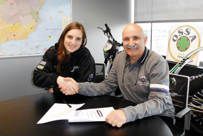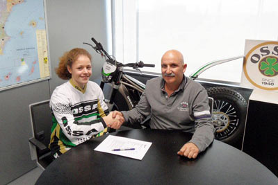 Esta joven piloto tuvo la oportunidad de hacer las primeras pruebas con el prototipo TR125i quedando fascinada por el rendimiento y ligereza de la moto. En su visita a la fábrica, Theresa entrenó con la TR125i especialmente preparada por el equipo de carreras a fin de ajustarla a sus necesidades. La cooperación entre el importador Nonstop Motoren BV y todo el equipo Ossa, ha sido clave en este fichaje. Theresa participará en todas las carreras del Campeonato Europeo y del Campeonato Alemán así como en algunas carreras de Holanda. Desde Ossa le deseamos toda la suerte del Trébol.