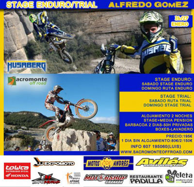 el domingo. El sábado se hará una ruta de trial. ¿Qué necesitas? Los asistentes deben llevar su moto, gasolina y el equipo necesario (botas, casco y demás). Se recomienda algún recambio básico de la moto como manetas, filtro de aire, cámara, etc. ¿Cúanto