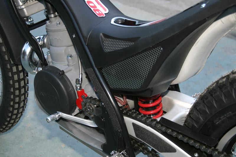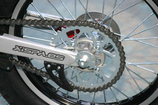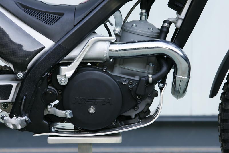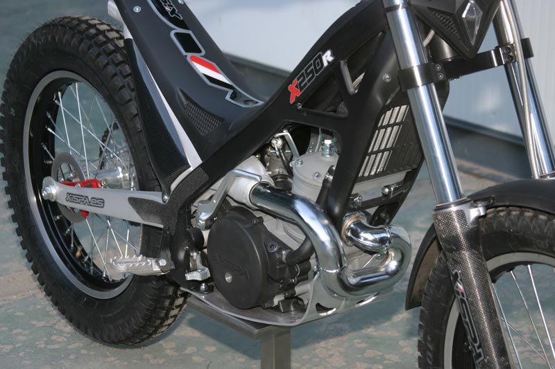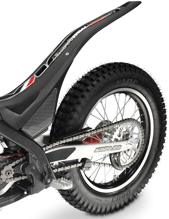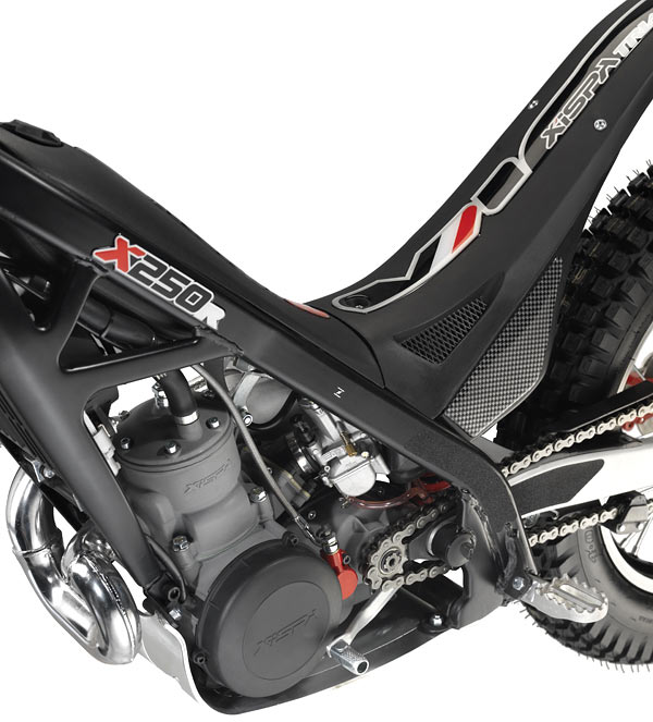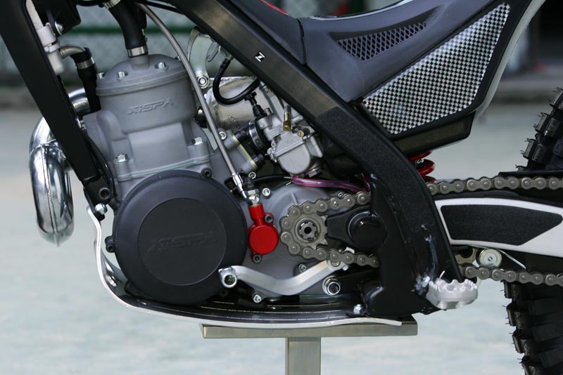 Se presentará en dos versiones, racing y homologada. Equipa un chasis de acero al cromomolibdeno de calidad 25CRM04 pintado en negro, horquilla telehidráulica regulable de 40 mm realizada por la propia firma Xispa, así como el monoamortiguador trasero.