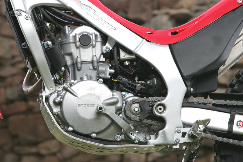 Una muestra del elevado nivel tecnológico de qué goza este nuevo modelo es la posibilidad para el usuario de modificar la curva de encendido y el mapa de inyección según el tipo de terreno o estilo de pilotaje. Basta con disponer del correspondiente kit comercializado por Montesa-Honda S.A. como accesorio opcional.