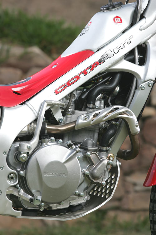 Montesa y Honda afrontan un doble reto: el compromiso en la protección del medio ambiente y el cumplimiento anticipado de la normativa que a partir de 2006 pondrá fin a la presencia de los actuales motores de dos tiempos en este tipo de competiciones. La Montesa Cota 4RT deriva directamente de la Honda RTL 250F que el pasado mes de Mayo debutó en competición en el Gran Premio del Japón.