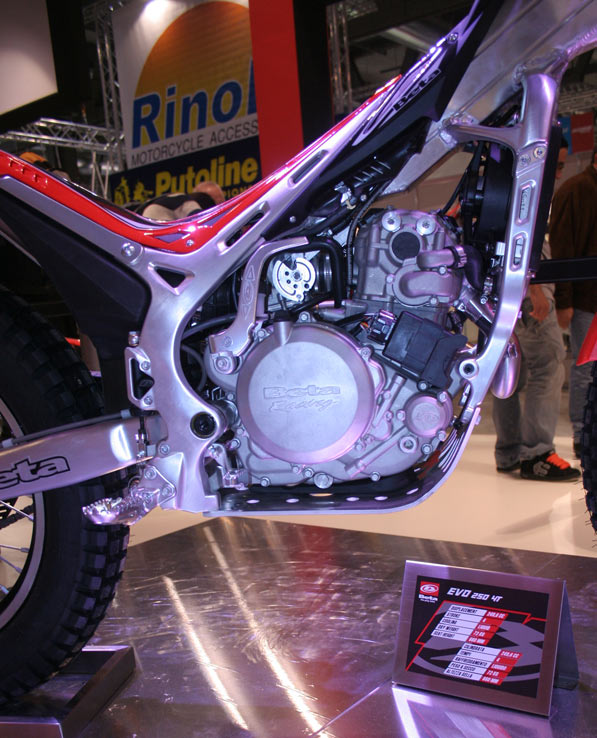 Aprovechando la celebración del Salón Internacional de la Moto de Milán, Eicma 2008, Beta ha mostrado su EVO 4T, que al igual que el modelo de 2T ha causado sensación por su revolucionario chasis monoviga en aluminio, así como el resto de novedades comunes al modelo 2T.