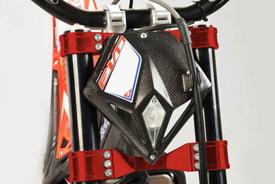 Protecciones y componentes en carbono: Porta faro y protectores de chasis. Desarrollados