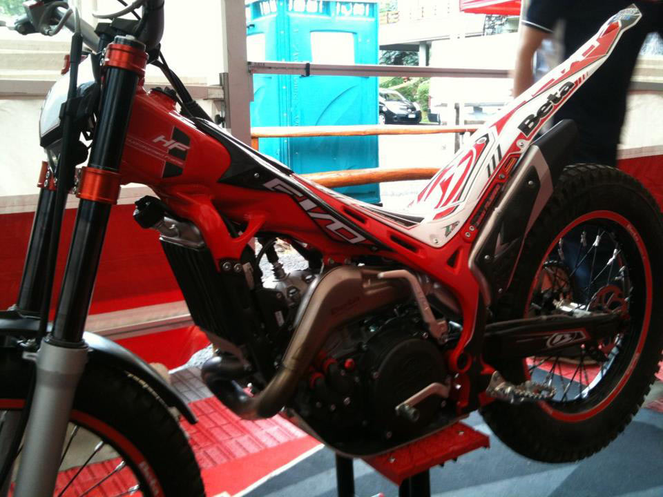 Esta es la primera foto que se ha difundido de la nueva Beta 2013, que se acaba de presentar en el Gran Premio de Italia celebrado en Santo Stefano d'Aveto. Si habéis leido el preportaje previo del Gran Premio de Italia que se disputa este fin de semana en Santo Stefano de Aveto, os habréis percatado de que en el mismo se menciona que el Moto Club della Superba ha anunciado que con motivo de este trial se presentará la nueva Beta EVO 2013. Esta foto es la primera del nuevo modelo de la marca transalpina, que destaca por su nuevo chasis rojo y su totalmente renovada e impactante estética y plásticos. La gama Evo ha sido totalmente rediseñada para 2013, con un montón de novedades. |