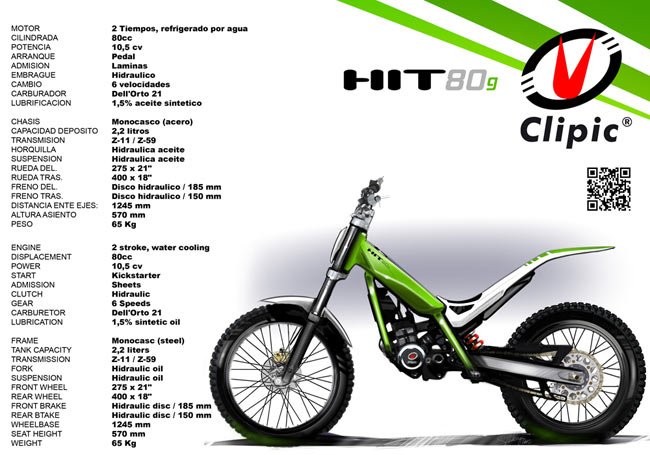 sus motos de trial, la Hit80g con refrigeración líquida