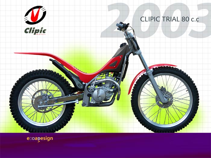 Clipic, la marca de motos de trial especializada en motos infantiles sigue sorprendiendo con la constante evolución y mejora de sus modelos. En esta ocasión nos trae un avance de lo que será su nuevo modelo de 80 cc para el próximo año 2003.