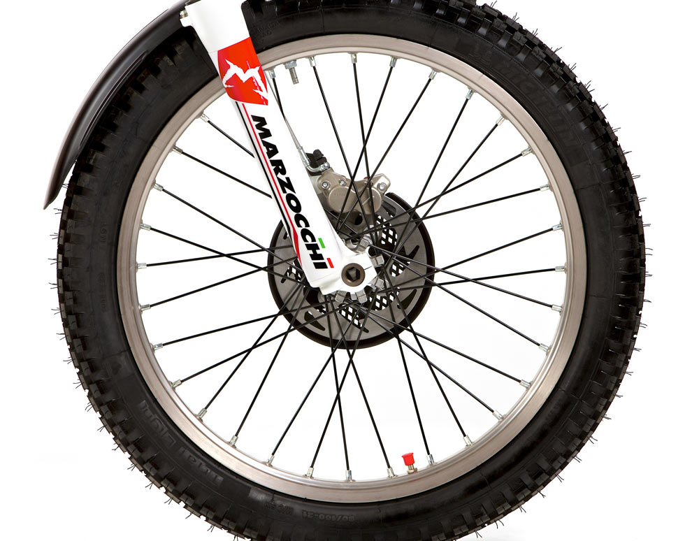 - Último modelo de horquillas Marzocchi blancas, heredadas de la Pro Raga 2011.