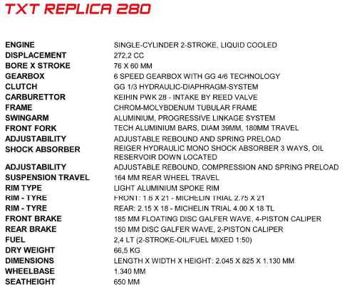 TXT Factory Replicamodels are assembled with a Keihin carburetor and