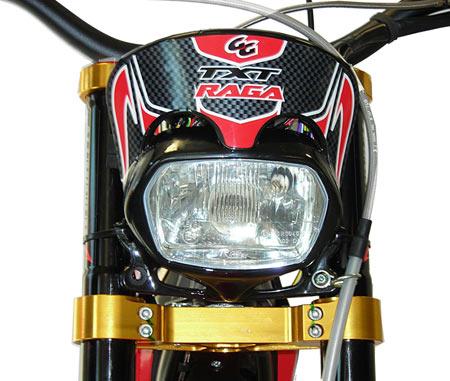 También caracterizan a la Racing Raga un faro en negro, de color carbono y sin intermitentes; el conjunto de freno delantero tipo racing (es flotante); un manillar cónico con rodamiento del puño del gas Hebo Raga; mientras que la bomba de freno lleva un protector especial para prevención de posibles golpes.