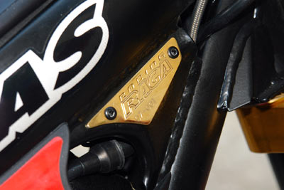 "La Racing Raga es una moto de gran nivel", comenta Claudi Obrador, jefe de la division de trial en competicion de Gas Gas y mecánico personal de Adam Raga, "incorpora una horquilla delantera Marzocchi 40 y un nuevo amortiguador trasero con nuevo taraje que le da más progresividad, además de carburador Keihin. Es una moto de y para coleccionistas o entusiastas del trial".
