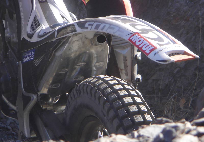 En la suspensión trasera incorpora un nuevo amortiguador Sachs, con nuevos reglajes y regulable en compresión, extensión y precarga. El sistema de fijación sigue siendo sin bieletas, pero muy aligerado respecto al modelo anterior.