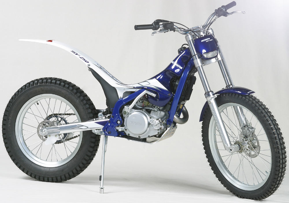 En esta presentación os mostramos la SY 240, en la que destaca el nuevo "look" con el basculante en color azul en conjunto con el depósito. A partir de la próxima semana se podrá disponer de la Scorpa SY 250 2T Racing 2004 a un precio de 5.168,71 euros (iva incluido), y la versión Long Ride, con depósito y asiento grandes, estará disponible a finales de septiembre a un precio de 4.860,84 euros (iva incluido).