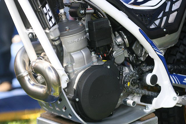 El proctector del motor también es de nuevo diseño, así como la goma amortiguador entre el protector y el motor, garantizando una mejor seguridad aún en apoyos de cárter muy fuertes. En el motor se han revisado pequeños detalles, destacando la incorporación del nuevo encendido Hidria con pick-up exterior, con dos curvas de potencia de serie.
