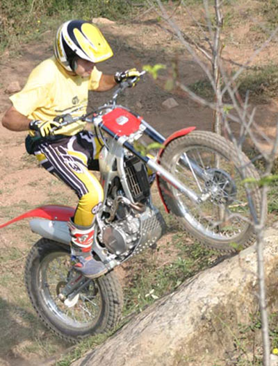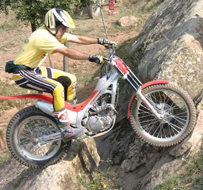 Reacción del motor. A continuación decidí probar la moto en algunos escalones cortados, no demasiado fuertes porque no estaba aún hecho a esta moto, pero sí suficientes para probar las reacciones de la moto y sobretodo su salida. La verdad es que en este aspecto quedé gratamente sorprendido, la moto reaccionaba perfectamente a cualquier petición de gas, subiendo con rapidez de vueltas y reaccionando tan bien como en una 2T.