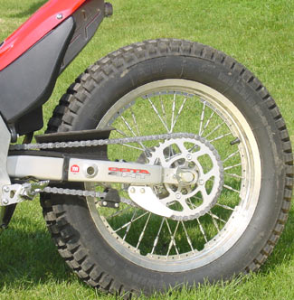 Pero no penséis que retiene de golpe como una Honda XR o una Yamaha XT, sino todo lo contrario, se trata de una retención suave, progresiva, no de golpe, a la que te acostumbras rápidamente, una retención ideal para el trial. Esto también ayuda a la hora de hacer excursiones e interzonas, pues en las bajadas contamos con un punto más a favor.