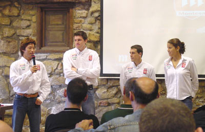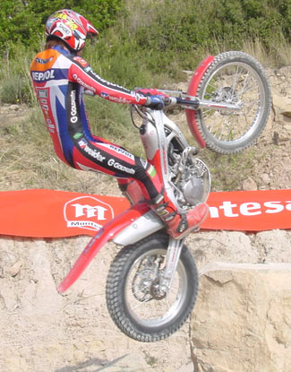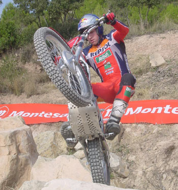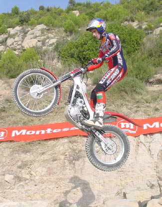 Empezamos por el trial, que es el punto fuerte de la jornada, como demuestra la presencia de todo el equipo oficial. Sobre la nueva Cota tratará la mayor parte de la presentación. A un espectacular video sobre el mundial de trial sigue la presentación de los pilotos oficiales, que tras un aplauso comentan brevemente la temporada. La chispa simpática la pone Fuji cuando dice "muy contento de ser campeón del mundo, cinco años segundo, yo ya cansado..."