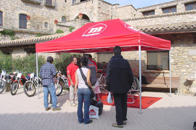 Desde el camino de tierra que lleva a la impresionante finca de Les Comes se divisa ya la preciosa y gigantesca masía que será el centro de operaciones de la jornada. Allí nos encontramos con un panorama que hará las delicias de cualquier apasionado al Off Road. A un lado una carpa con una buena colección de clásicas Montesa y Honda de Trial, desde la Trial 250 a la Cota 4RT, pasando por las 247, la Honda exMarland Whaley de Miquel Cirera, una Honda "Rothmans" y otras maravillas. Junto a ellas, en otra carpa formando ángulo recto más joyas, las motos oficiales del equipo de los últimos años, las mejores Cota 315 del mundo, las ganadoras de los mundiales con Colomer, Lampkin, Fujinami y Laia Sanz.