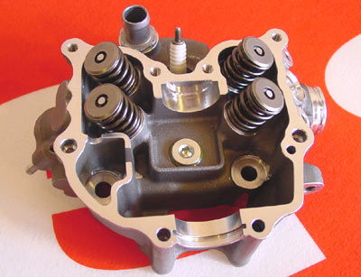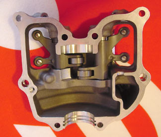 En lo que respecta a la culata, se ha minimizado al máximo principalmente por el diseño de la tapa de combustión, a partir de la cual se ha desarrollado el resto de la culata. Cuenta con 4 válvulas, 2 de admisión y 2 de escape y una única bujía insertada oblicuamente.