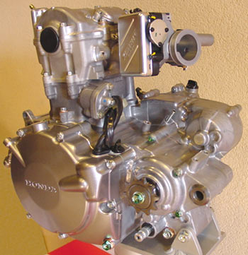 El cilindro tiene una carrera más larga y un diámetro más pequeño que el CRF de cross.