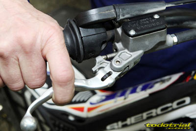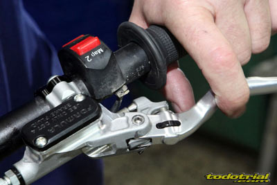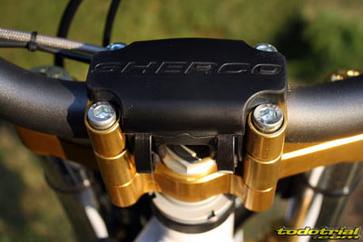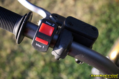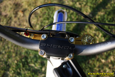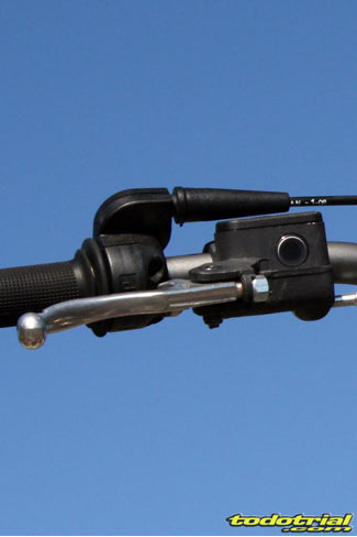Veamos ahora detenidamente un repaso a cada elemento de la moto, desde lo que es novedad a lo que no lo es, ya que en ambos casos puede haber aspectos destacables de interés para quienes no estén familiarizados con las motos de la marca. Intentaremos dividir los elementos en distintos apartados. Mandos El manillar, de diámetro variable, es nuevo y tiene una geometría diferente al anterior. Presenta muy buen aspecto y una posición agradable y cómoda. Es Oxia, marca no muy conocida pero que demuestra su calidad en esta Sherco. El protector del manillar es pequeño y no protege demasiado de posibles golpes. Los puños son PEA, tampoco conocidos pero nos dejaron excelente impresión. Son del tipo de los clásicos Ariete pero más blandos, por lo tanto más cómodos, resistentes y con mayor adherencia a los guantes. No falta el interruptor de doble mapa, no tan efectivo como en las motos de inyección programable pero sí ligeramente percibible a muy alto régimen.
