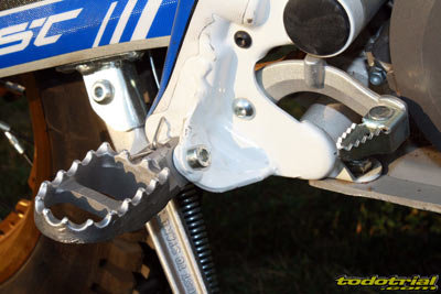 Las estriberas siguen siendo las habituales, proporcionan buen agarre y una postura cómoda, se pliegan sin problemas y realmente son tan buenas y funcionales como las que venden las marcas de accesorios. Sus dientes no son excesivamente afilados, evitando desagradables heridas en posibles golpes, pero las botas se enchanchan perfectamente. La palanca de arranque también sigue siendo la habitual, de aluminio, muy pequeña pero cómoda y robusta, aunque para nuestro gusto demasiado afilada en la punta, lo que puede ocasionar algún roce o incluso herida en caso de que se nos escape, como así sucedió. La palanca de freno trasero tiene la punta plegable, es larga y regulable en altura y holgura, resultando muy cómoda y precisa. La palanca de cambio es magnífica, larga y muy precisa pese a sus muy cortos recorridos. La precisión para cambiar de marchas en medio de la zona estando parado es impecable. Su punta también es retráctil.