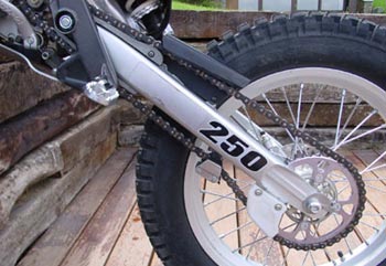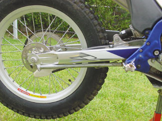 Por cierto, las estriberas son standart, es decir no son malas pero estan muy lejos de las preciosas piezas talladas que equipa la SY 250, además de dar una cierta sensación de ser pequeñas. Para compensarlo la TY 125 F monta un basculante que sí que está en la línea de las SY, con un aspecto y una terminación realmente impecable.