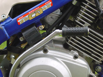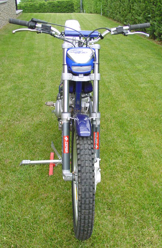 Como ya vimos en Francia, 15 cc. de aumento en la cilindrada hacen milagros, y es que realmente la diferencia de prestaciones entre la 125 cc y las 140 cc. es sustancial. Suponemos que más que la variación en las medidas internas del cilindro son los retoques en el árbol de levas y el carburador de 24, con ajustes específicos, lo que hace que el carácter del tranquilo y veterano propulsor Yamaha se transforme en un motor mucho más utilizable para la práctica del trial, siempre dentro de los límites que la pequeña cilindrada le impone. Y es que como quedó demostrado en las pruebas en tierras galas, con el motor de serie se llega muy pronto a lo máximo de sí de un ciento veinticinco cuatro tiempos refrigerado por aire.
