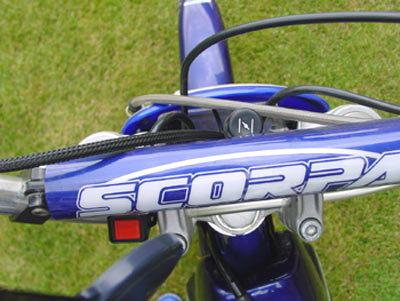 Y la verdad es que la Scorpa nos ha convencido plenamente. Al subirnos a la moto ya notamos que la posición de conducción ha mejorado con respecto al modelo antiguo, y es que el manillar tiene una forma mucho más "normal" que antes, sin tener las puntas tan levantadas y cerradas hacia el interior. Además la moto monta dos alzas sobre la tija que se pueden eliminar fácilmente, con lo que se baja la posición del manillar varios milímetros sin ningún esfuerzo. De todas formas este es un aspecto en el que opinar es muy difícil, porque cada uno de nosotros tiene sus particulares manías, aunque creemos que la moto se adaptará bien a todas las tallas.